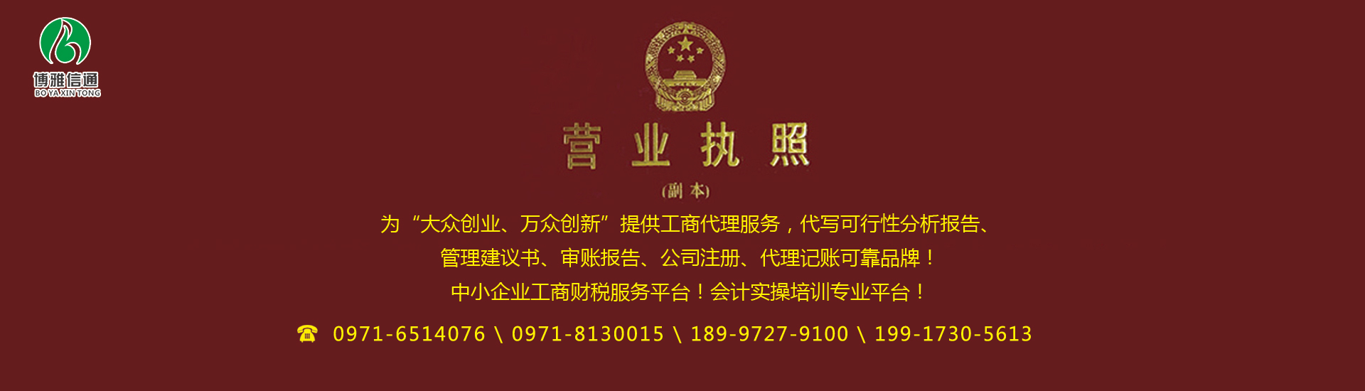 北京博雅信通會(huì)計(jì)服務(wù)有限公司西寧分公司為各中小企業(yè)提供各種專業(yè)工商財(cái)稅會(huì)計(jì)服務(wù)。包括公司設(shè)立籌劃、公司注冊(cè)、執(zhí)照變更、代辦注銷、代理記賬報(bào)稅、亂賬整理、會(huì)計(jì)實(shí)操培訓(xùn)、會(huì)計(jì)職稱培訓(xùn)(會(huì)計(jì)取證培訓(xùn))等一站式服務(wù)體系,誠信、專業(yè)、高效、省心! 公司簡(jiǎn)介: 北京博雅信通會(huì)計(jì)服務(wù)有限公司西寧分公司 成立于2003年,積累了幾十個(gè)行業(yè)工商財(cái)稅會(huì)計(jì)服務(wù)經(jīng)驗(yàn),主要提供公司注冊(cè)、執(zhí)照變更、企業(yè)注銷、工商年報(bào)、代理記賬、納稅申報(bào)、會(huì)計(jì)培訓(xùn)、財(cái)稅顧問等一系列服務(wù)。全程工商財(cái)稅老板們甩手我們代理,并且用足用好工商財(cái)稅優(yōu)惠政策,讓企業(yè)老板省心、省時(shí)、省事兒!節(jié)約會(huì)計(jì)核算和納稅成本,解放您的寶貴時(shí)間抓好企業(yè)經(jīng)營,做您的...